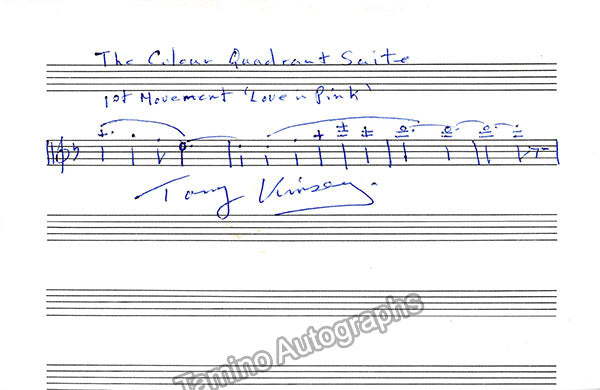 Autograph music quote with some bars from his work "The Colour Quadrant Suite" signed by him.  Size is 8.25 x 5.4 inches, in excellent condition.