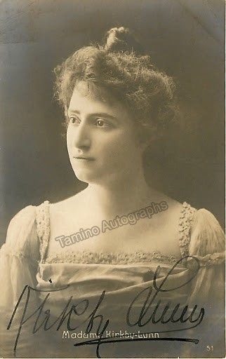 Signed photo postcard of the English contralto (1873-1930) shown as herself. Some minor silvering around borders. Size 3.25 x 5.5 inches.