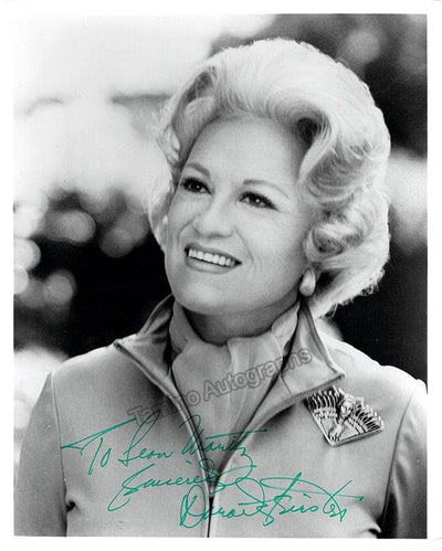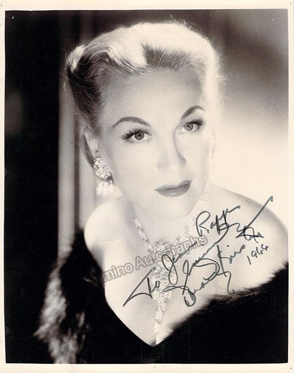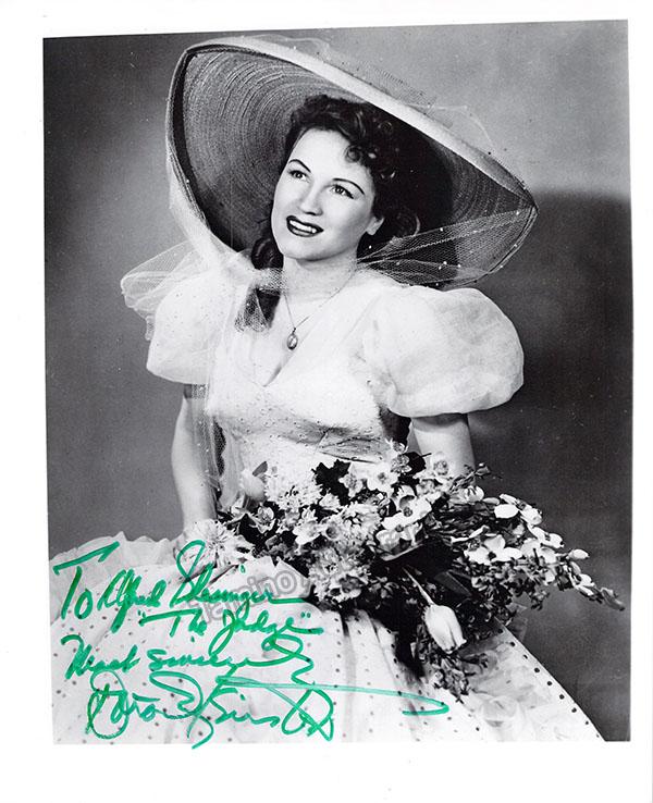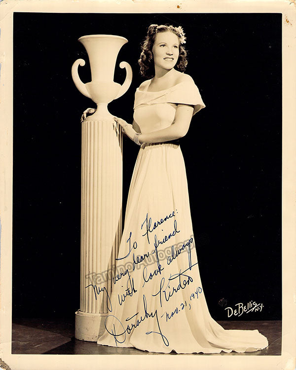 Signed photograph, shown as herself, inscribed and dated in 1940. Printed signature on front and stamped on verso by photographer De Bellis, New York. Size is 8 x 10 inches, several creases, otherwise in good condition.