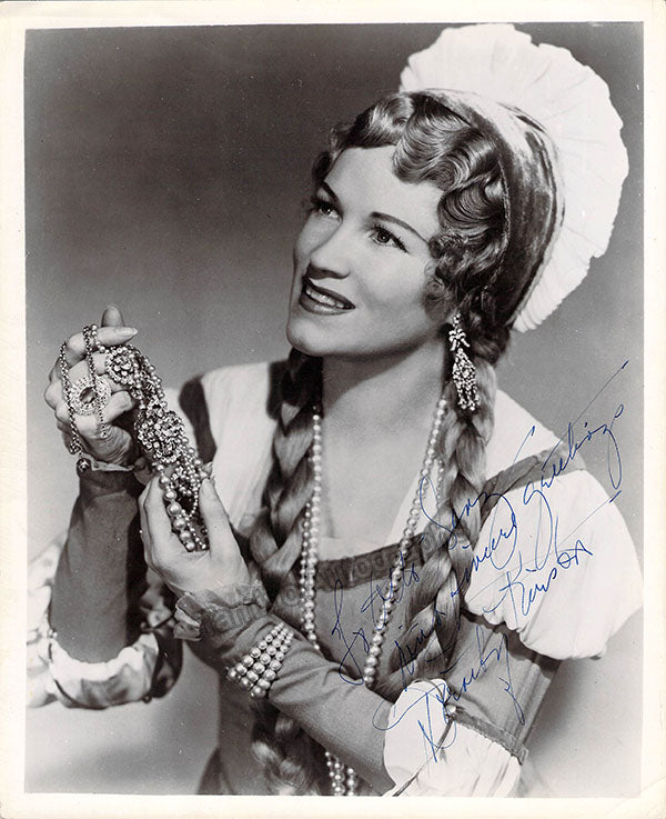 Signed photograph, shown in role (possibly Manon), inscribed. Size is 8 x 10 inches, in excellent condition.