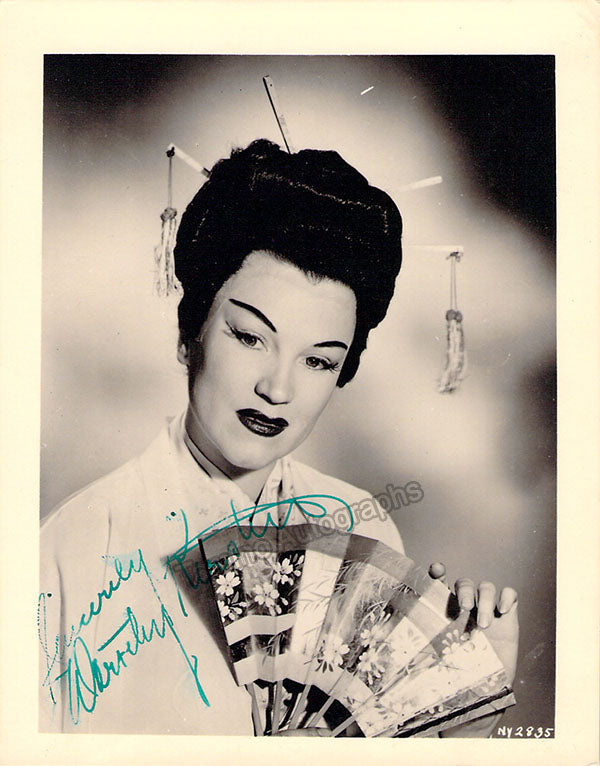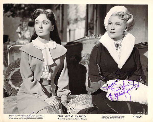 Signed photograph, shown in role in the MGM film 'The Great Caruso' next to the actress Ann Blyth. Size is 8 x 9.75 inches, several small creases on edges, otherwise in very good condition.