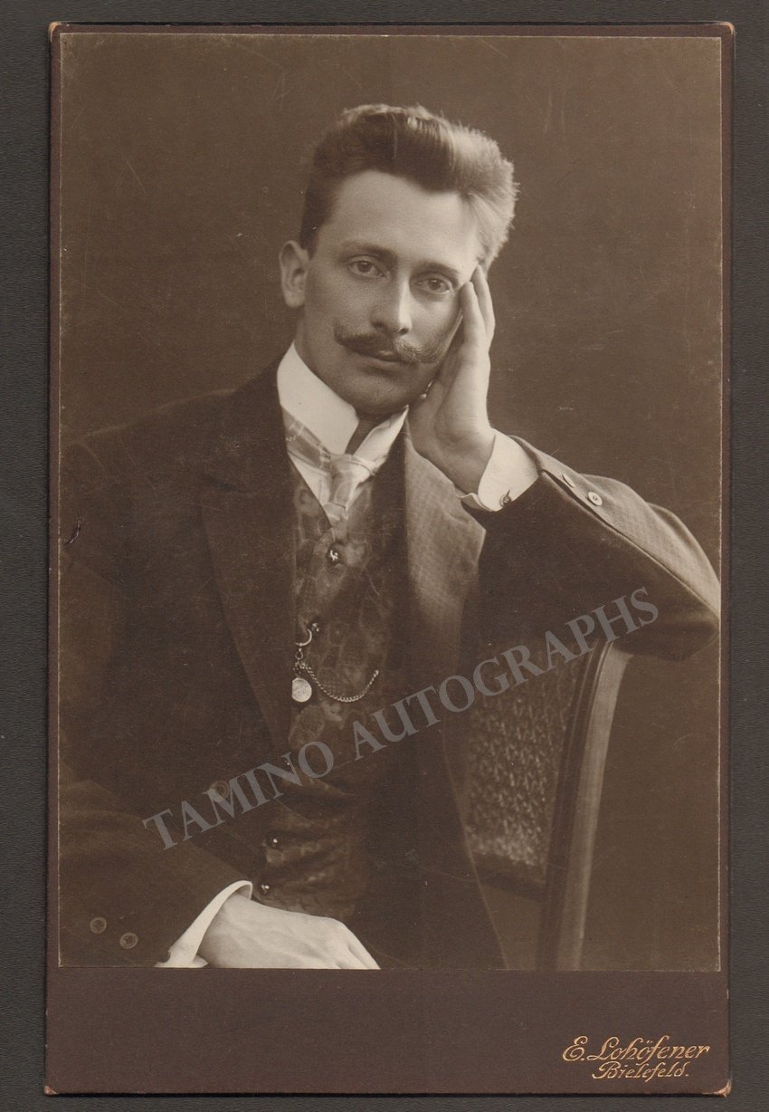 German tenor (1882-1965), also composer and pianist, unsigned cabinet photo, shown as himself. Photo by E. Lohofener, Bielefeld. Size is 4.25 x 6.5 inches, in excellent condition.