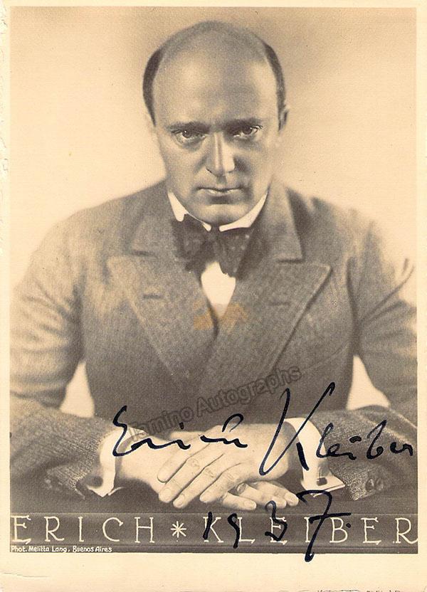Austrian conductor (1890-1956), known for his interpretations of the standard symphonic and operatic repertoire. Signed photo dated by him in 1937. Size 4 x 5.5 inches. Minor rust stain, otherwise in very good condition.