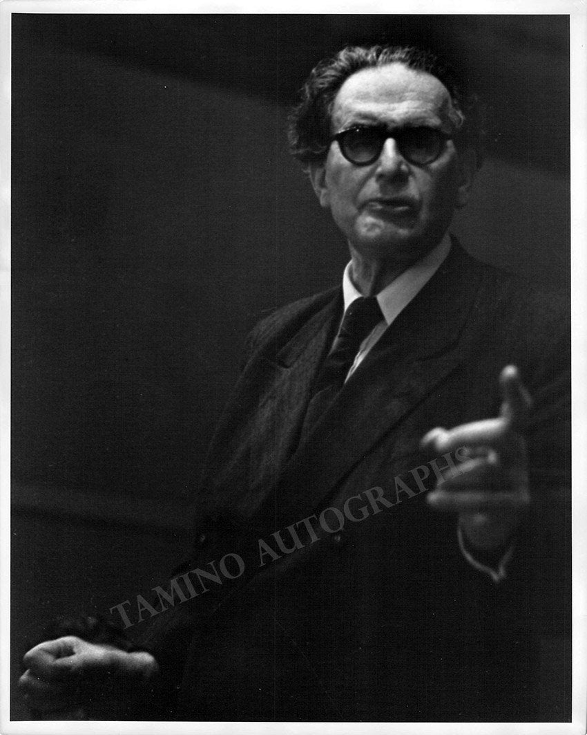 Original prints, signed on verso by music and arts photographer Jim Arkatov, who dated these photos (by hand, on verso) in 1955. Klemperer is shown conducting during a rehearsal. Different sizes (see individual descriptions), all photographs are in excellent condition.