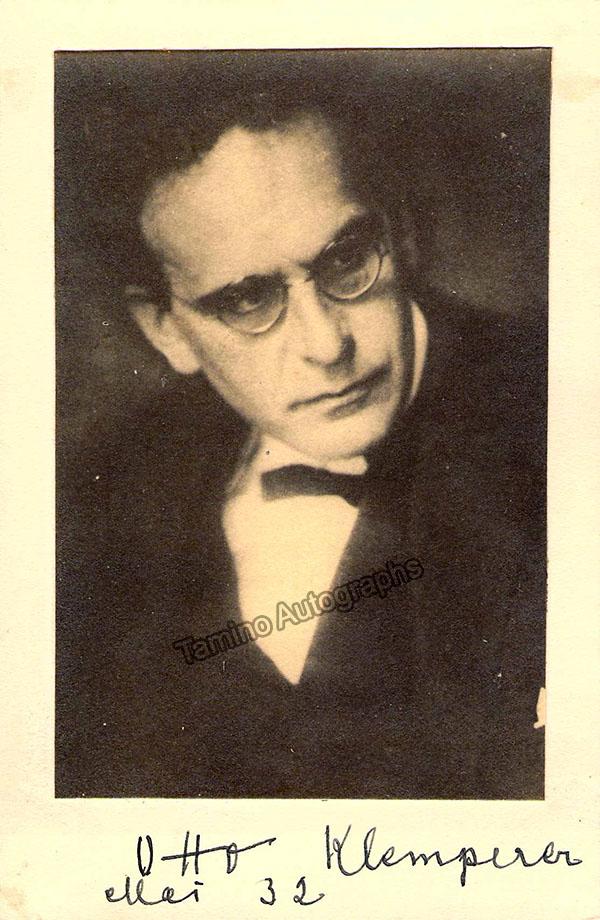 Jewish German-born conductor (1885-1973) and composer, described as one of the last few really great conductors of his generation.  Small photo attached to a card signed by him below, dated in 1932.  Card is 3.75 x 5.75 inches, in excellent condition.