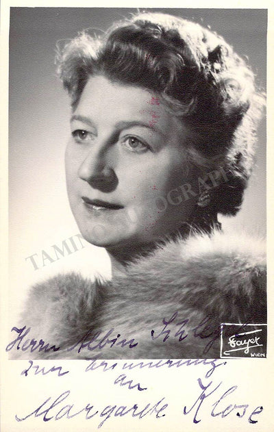 Signed postcard photograph, shown as herself, inscribed. Photo by Fayer photo studio, Vienna. Size is 3.5 x 5.5 inches, in excellent condition.