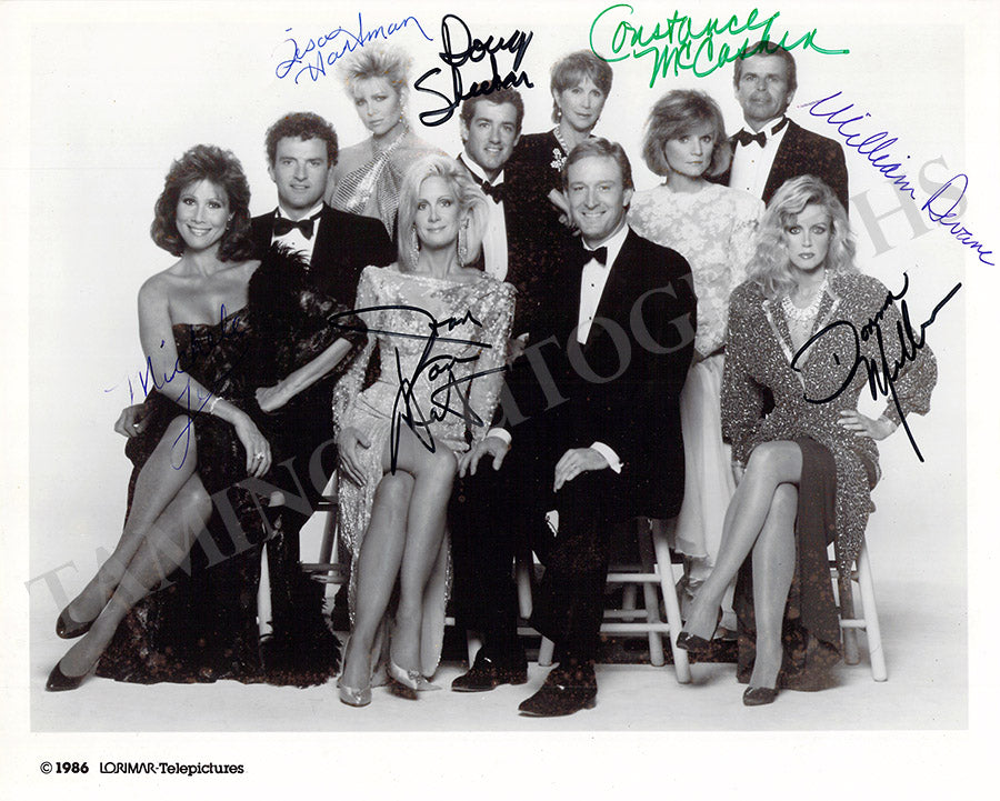 Nice photograph signed by seven members of the cast, including Lisa Hartman, Doug Sheehan, Constance McCashin, William Devane, Michele Lee, Joan van Ark, and Donna Mills. Size is 9.9 x 7.9 inches, in excellent condition.