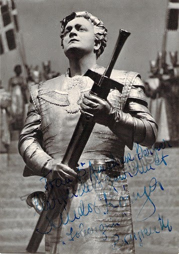 Signed photo postcard of the Hungarian tenor (1923-2002), shown in the title role of Wagner´s Lohengrin at Bayreuth, 1959. Inscribed. Signed on verso by him with a short sentiment. Size 4 x 5.75 inches.
