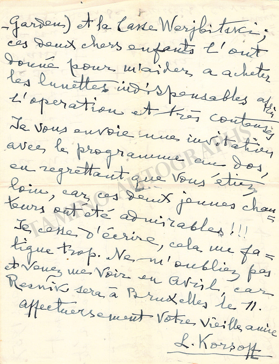 Korsoff, Lucette - Autograph Letter Signed Korsoff, Lucette - Autograph Letter Signed Korsoff, Lucette - Autograph Letter Signed