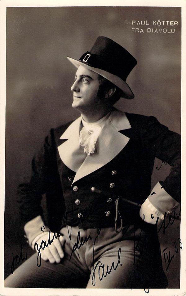 German tenor (1898-1974), signed postcard photograph, shown in role in Auber's Fra Diavolo, inscribed and dated in 1936. Size is 3.5 x 5.5 inches, in very good condition.