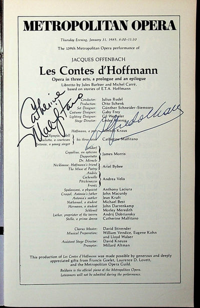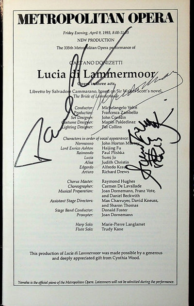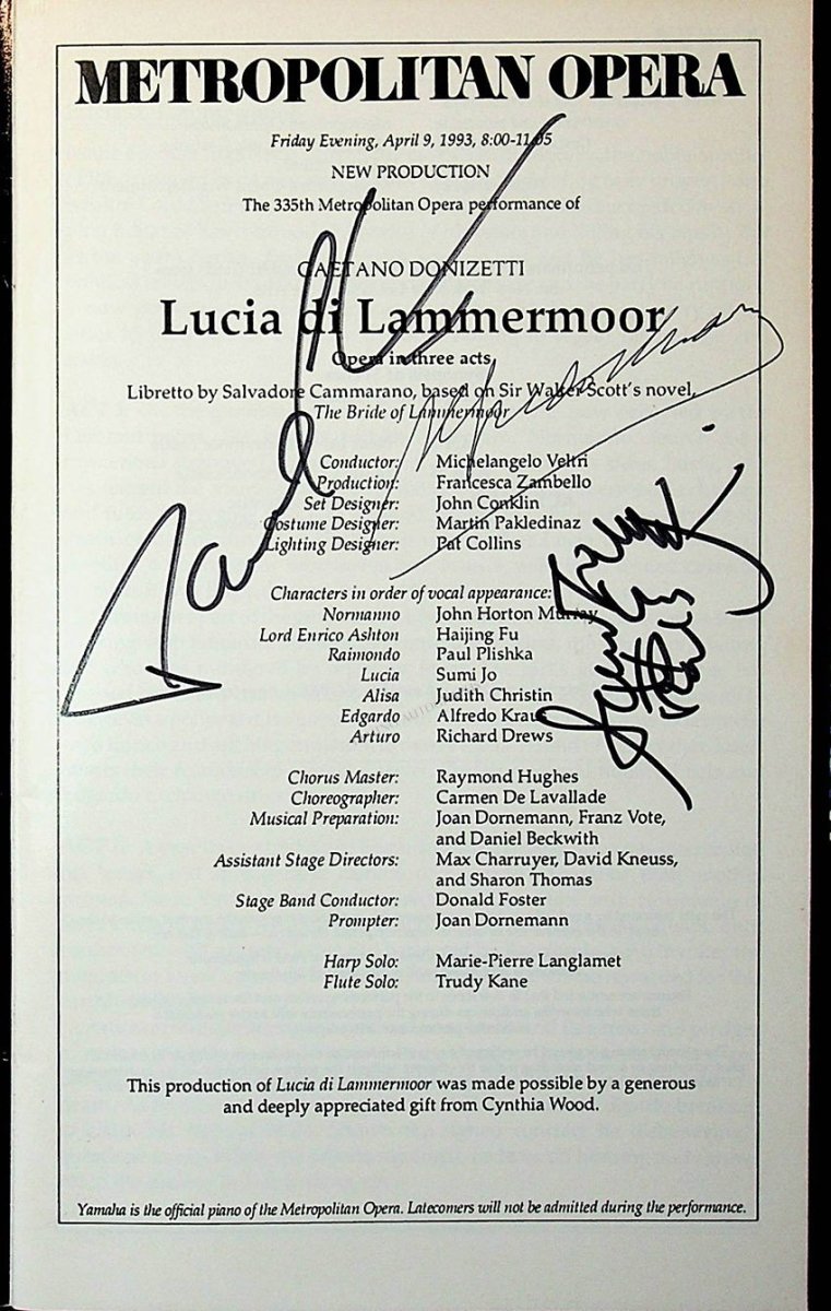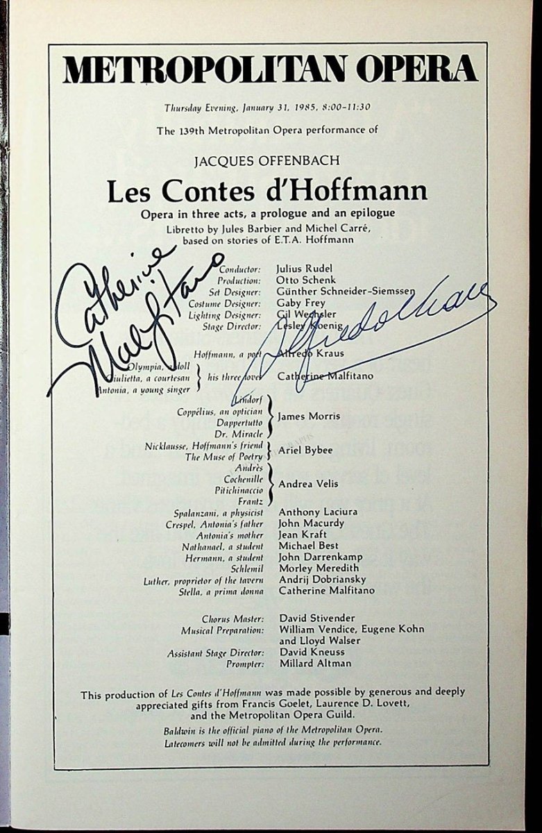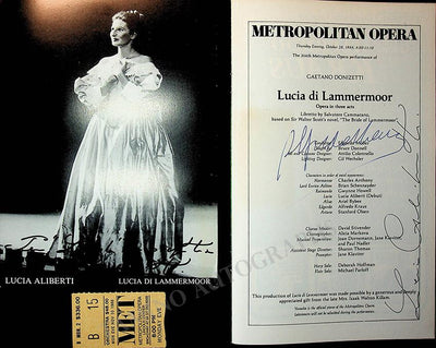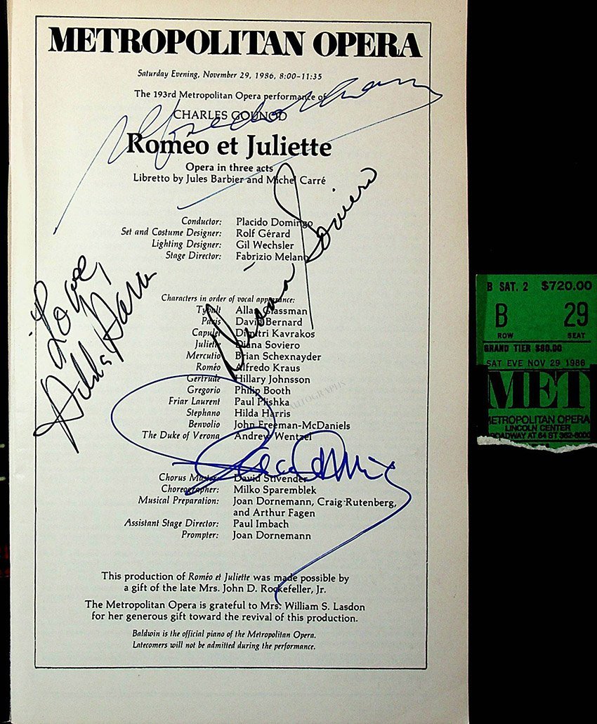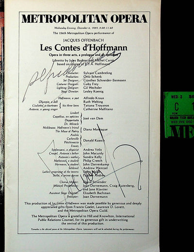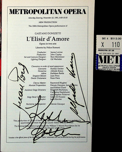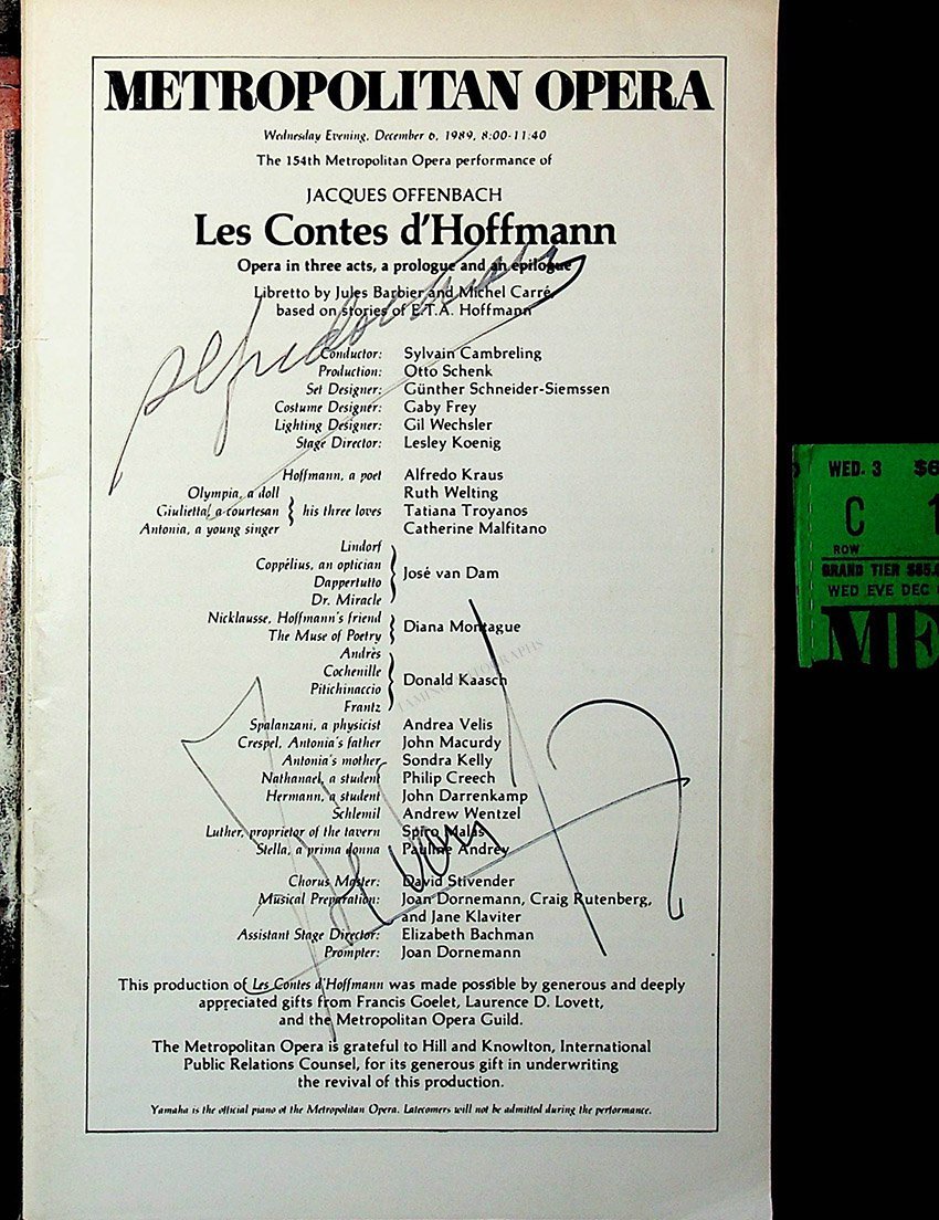 Signed opera programs, mostly from the Metropolitan Opera. FULL programs with all pages and covers. Each one's size is 5.6 x 9 inches, from very good to excellent condition.