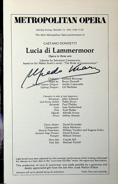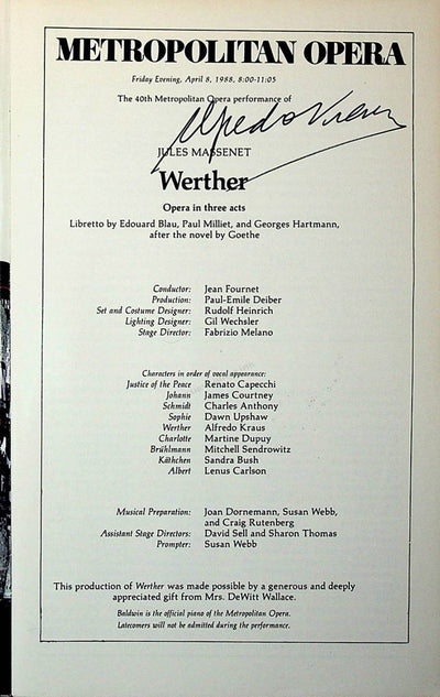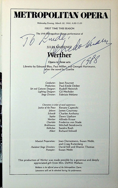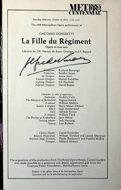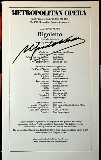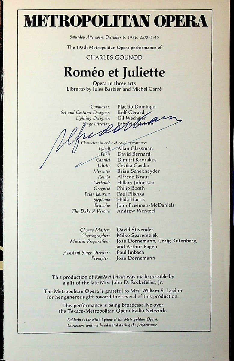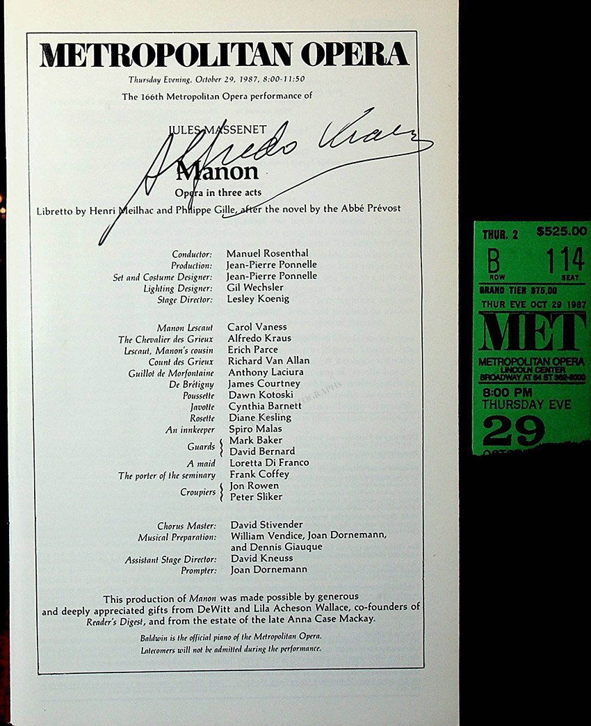 Kraus, Alfredo - Signed Opera Programs (Various Options)