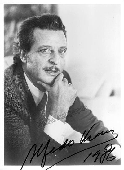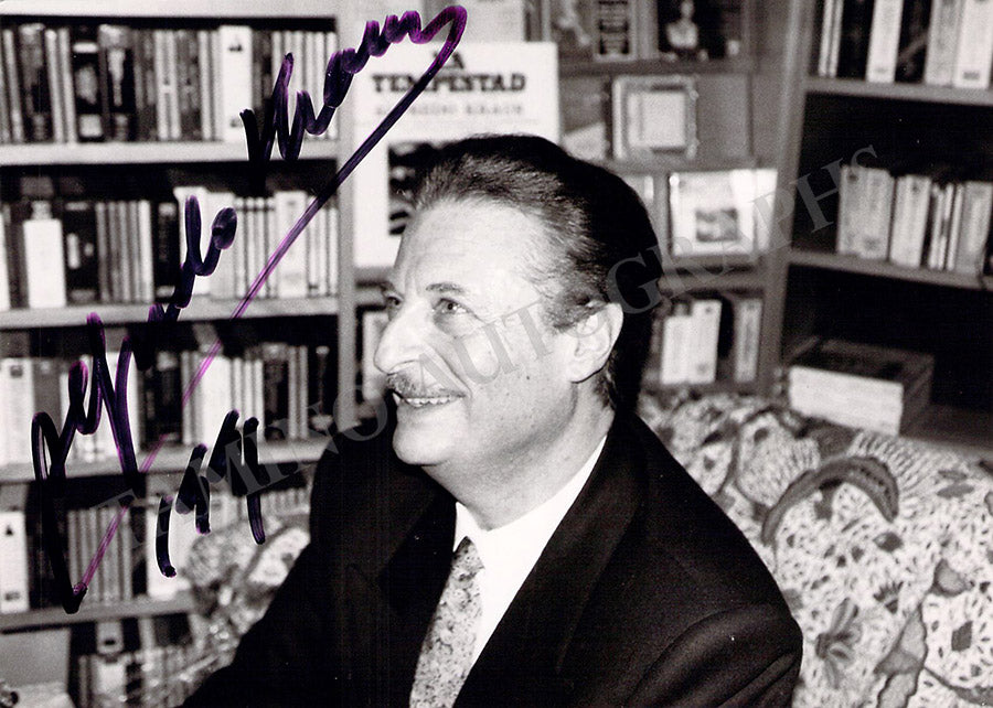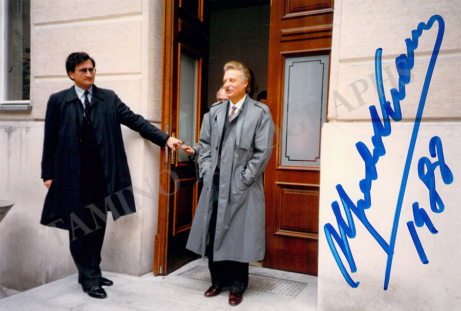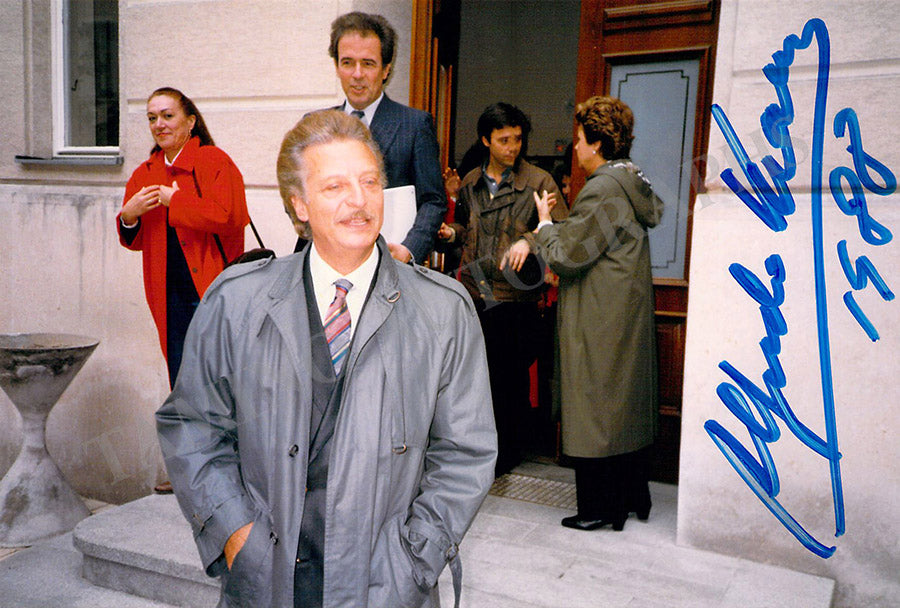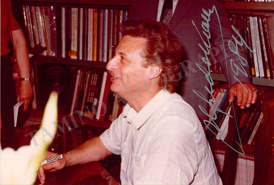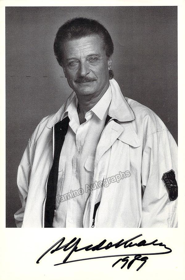 Signed photograph, shown as himself, dated in 1994. Stamped on verso by photographer Robert Schoisengeier. Size is 4 x 5.75 inches, mounting tape traces on verso, otherwise in excellent condition.