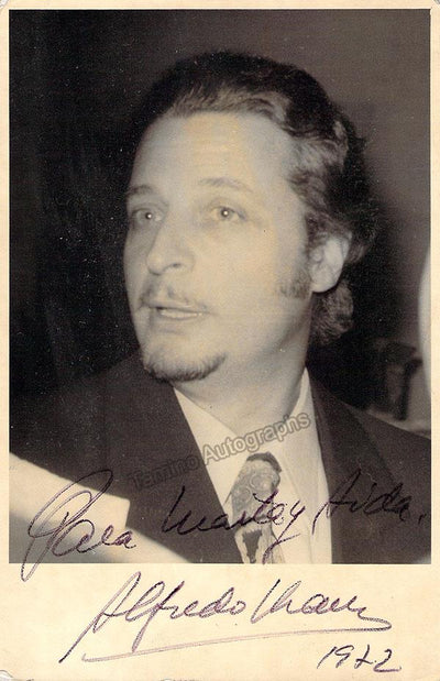 Signed photograph, shown as Narbal in Bizet's Les Pecheurs de Perles, dated in Buenos Aires in 1972. Size is 4.75 x 6.75 inches, in excellent condition.
