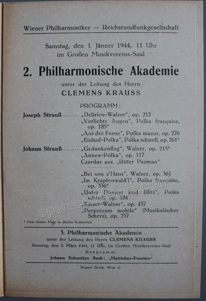 Krauss, Clemens - Vienna Philharmonic Orch. Program 1944