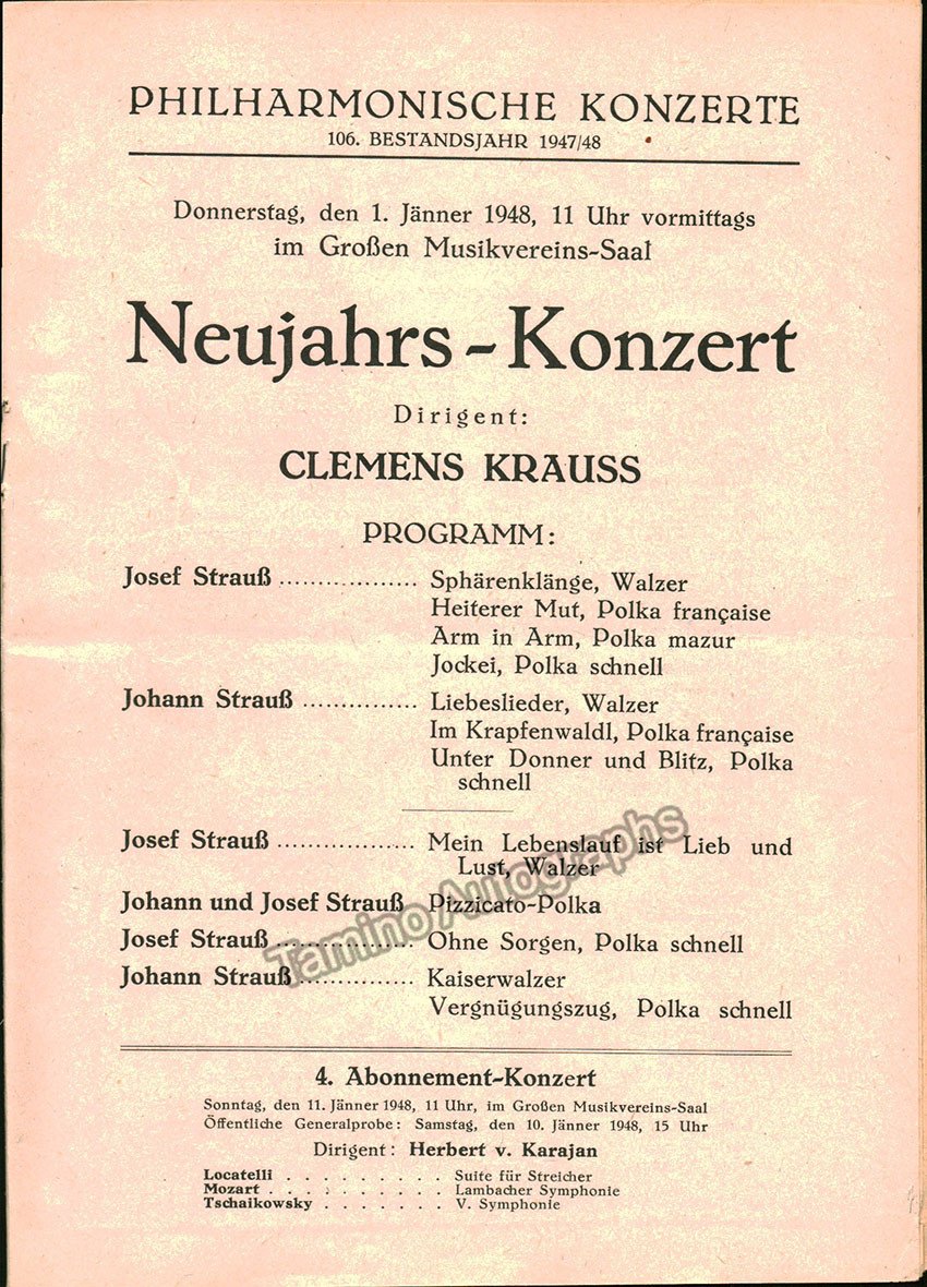 Krauss, Clemens - New Year´s Concert - Vienna Philharmonic Orchestra Program 1948