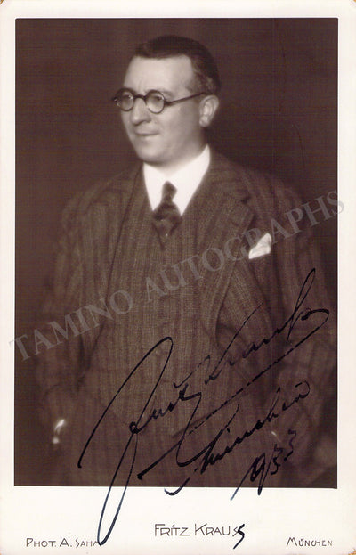 Signed postcard photograph, shown as himself, dated in 1933, Munich. Stamped on verso by photographer A. Sahm, Munich. Size is 3.5 x 5.5 inches, in excellent condition.