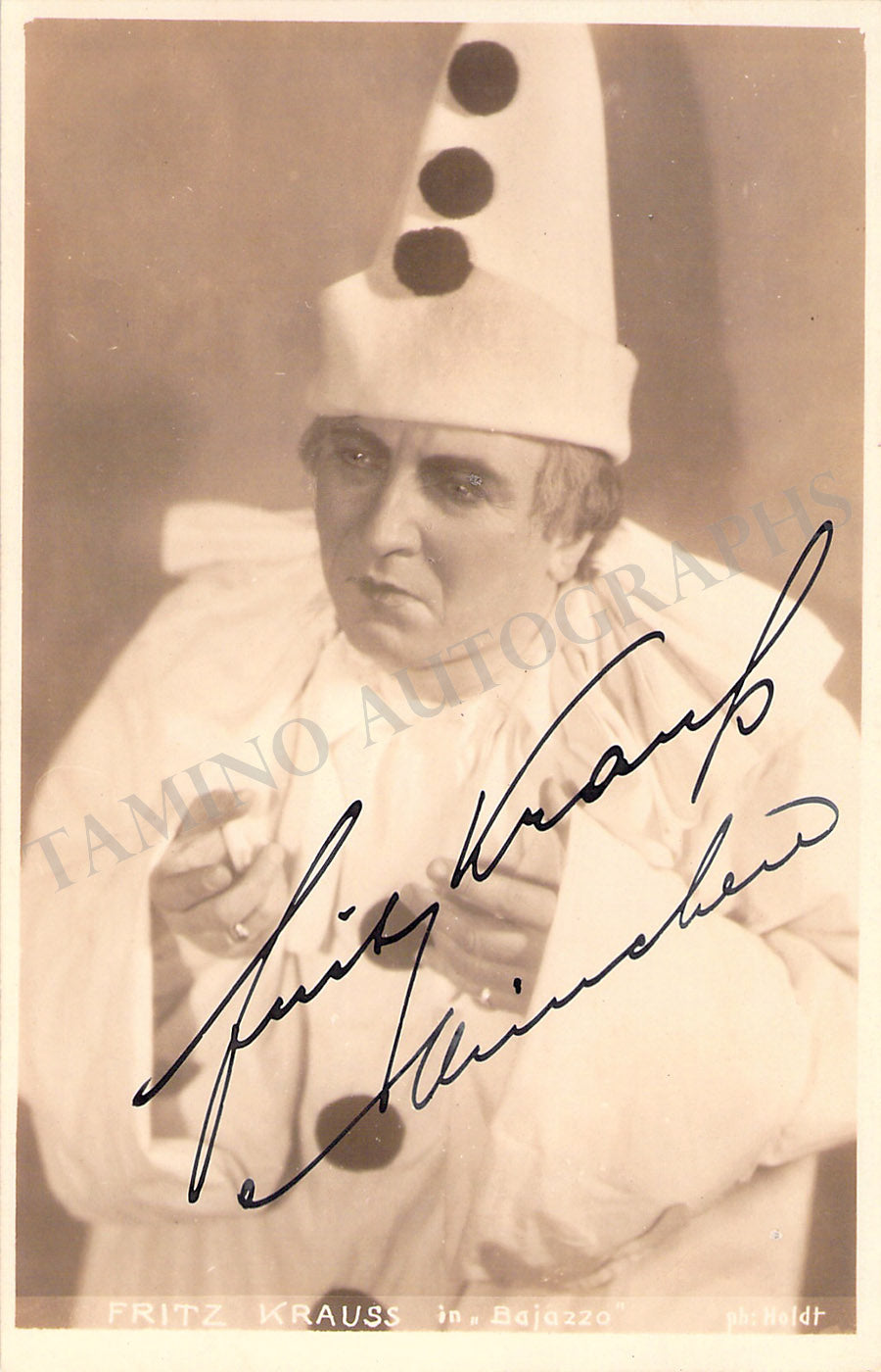 Signed postcard photograph, shown as Canio in Leoncavallo's I Pagliacci. Photo by Holdt. Size is 3.5 x 5.5 inches, in excellent condition.