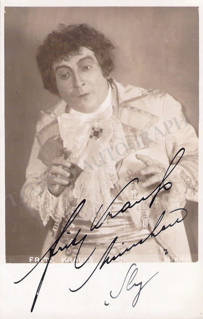 Signed postcard photograph, shown in role in Ermanno Wolf-Ferrari's opera Sly. Size is 3.5 x 5.5 inches, in excellent condition.