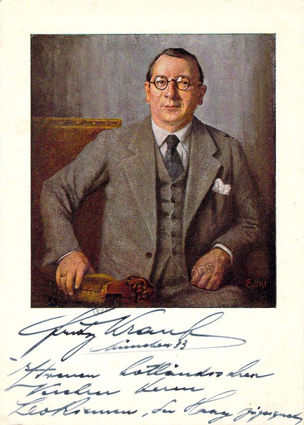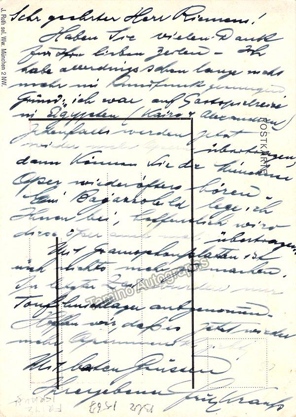 Signed postcard photograph, shown as himself, signed on front with additional signatures and extensive inscription on verso. Photo by A. Sahm, Munich. Size is 3.5 x 5.5 inches, in excellent condition.