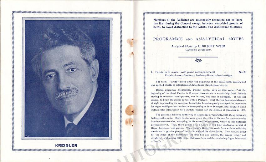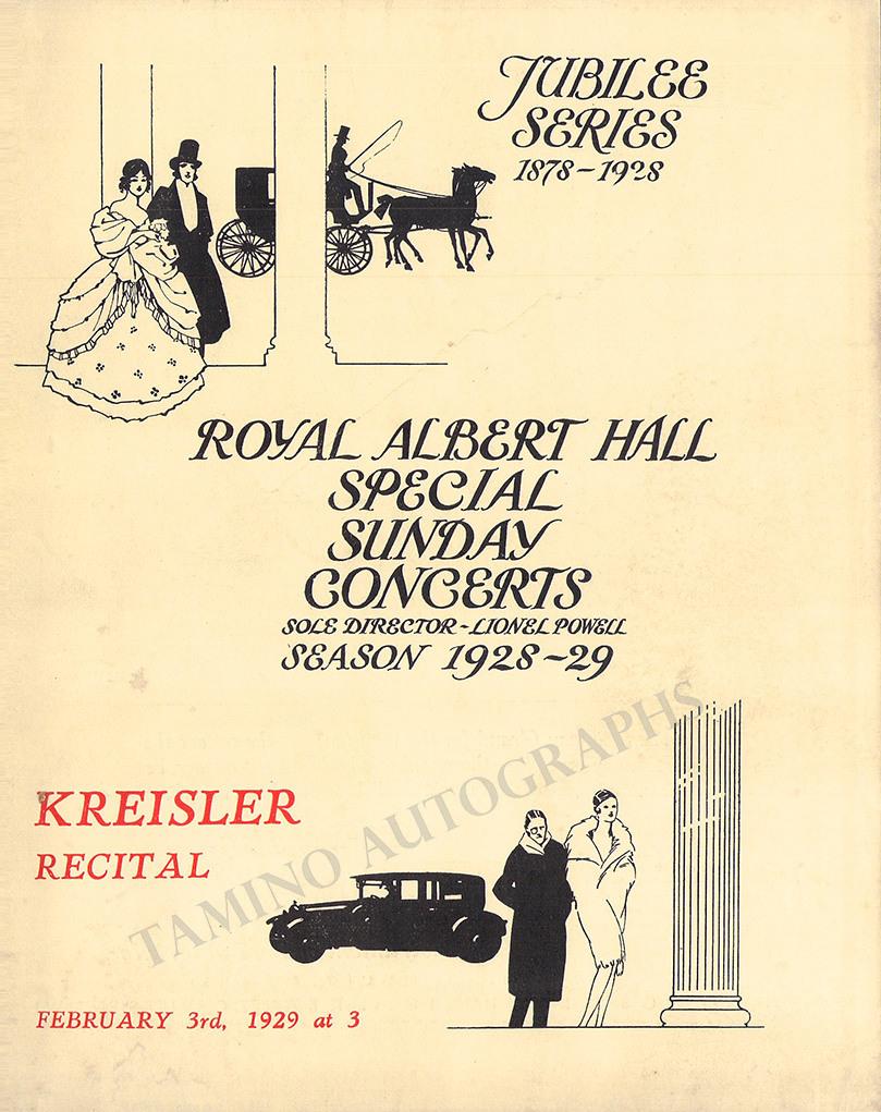 Kreisler, Fritz - Concert Program Royal Albert Hall London 1929 - Tamino Kreisler, Fritz - Concert Program Royal Albert Hall London 1929 - Tamino