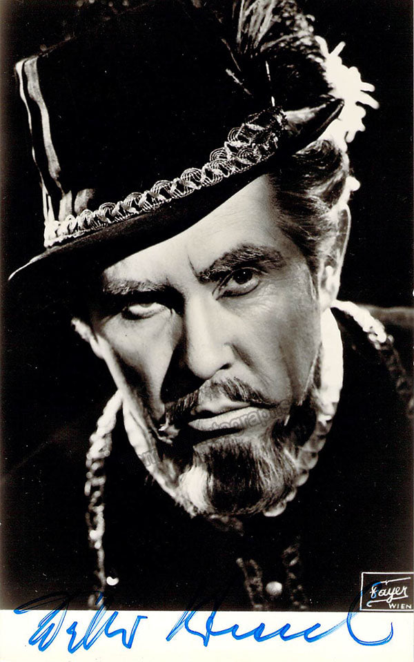 Signed photo postcard, shown in role. Photo by Fayer photo studio, Vienna. Size is 3.5 x 5.5 inches, in excellent condition