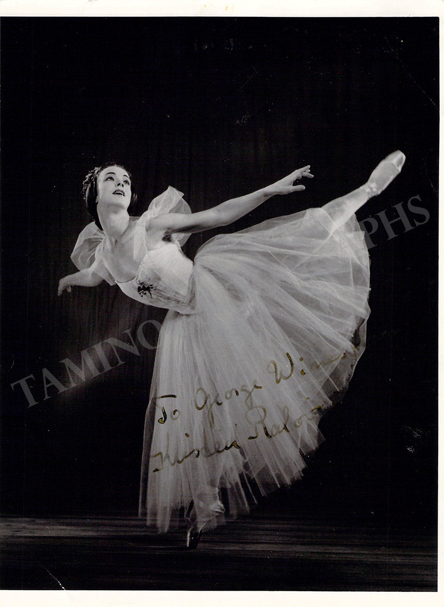Fine black-and-white photograph signed and inscribed by her, shown in performance; ink-stamped on verso by photographer H.J. Mydstok.  Size is 4.75 x 6.5 inches, minor creases, in very good condition.