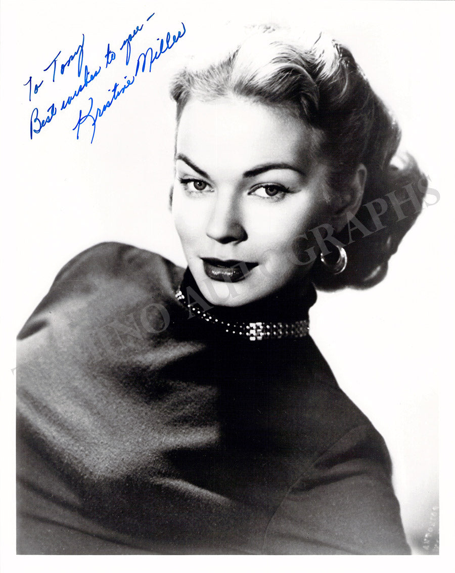 Black-and-white photograph signed and inscribed by her with a short sentiment. Size is 7.9 x 10 inches, in excellent condition.