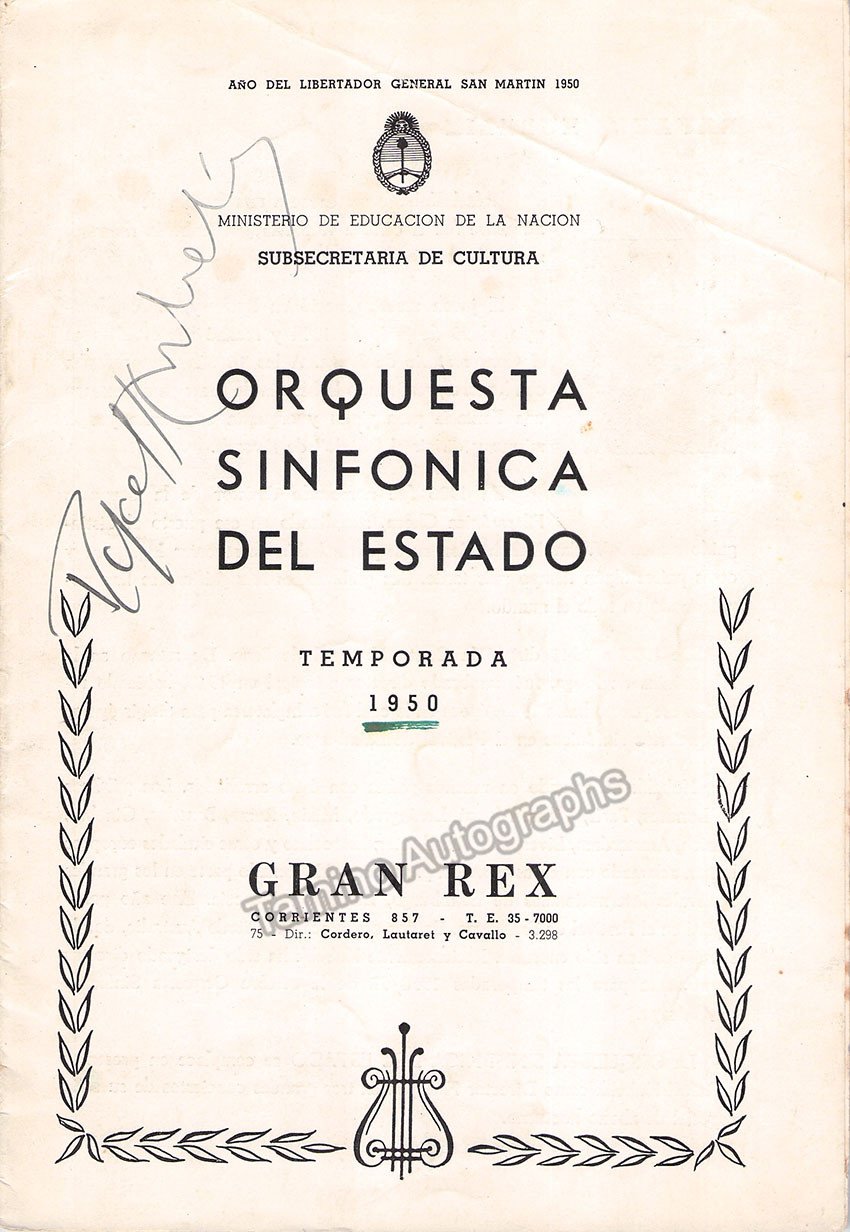 Program for a concert conducting at Teatro Colon, Argentina, 1950. Size is 6 x 9 inches, with pianist Witold Malcuzynski as soloist. See scans.