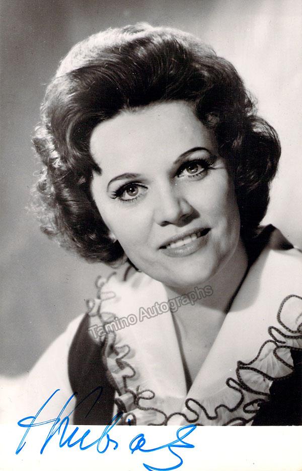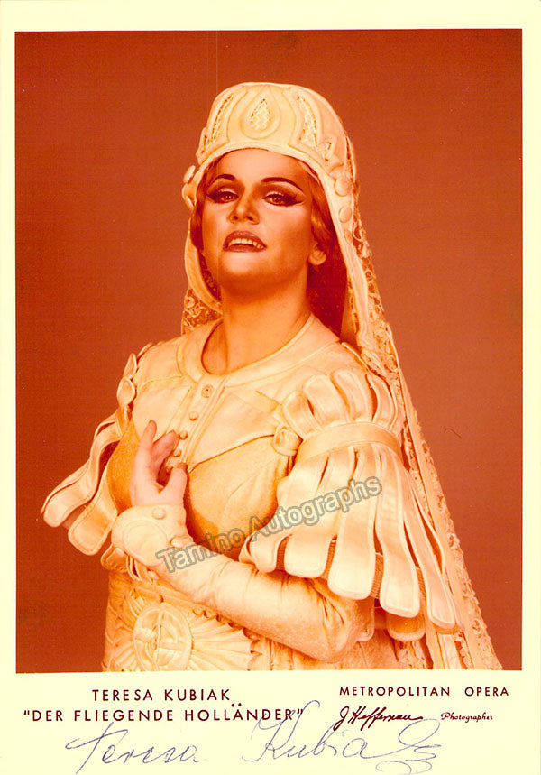 Signed photograph, shown as Senta in Wagner's Die Fliegende Hollander at the Metropolitan Opera. Photo by James Heffernan, Metropolitan Opera, New York. Size is 5 x 7 inches, in extremely good condition