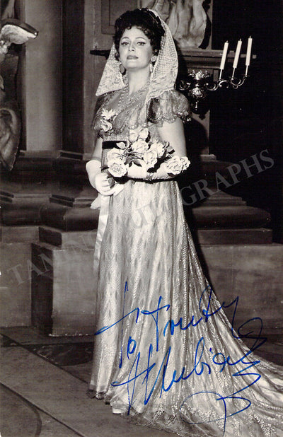 Signed photo, shown in title role of Puccini's Tosca at the Metropolitan Opera. Blindstamped by photographer James Heffenan, New York. Size is 3.5 x 5.5 inches, in extremely good condition.