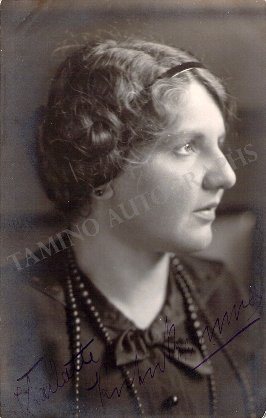 Signed postcard photograph, shown as Papagena in Mozart's Die Zauberflote. Size is 3.5 x 5.25 inches, slight paper loss on edges of photo, otherwise in excellent condition.