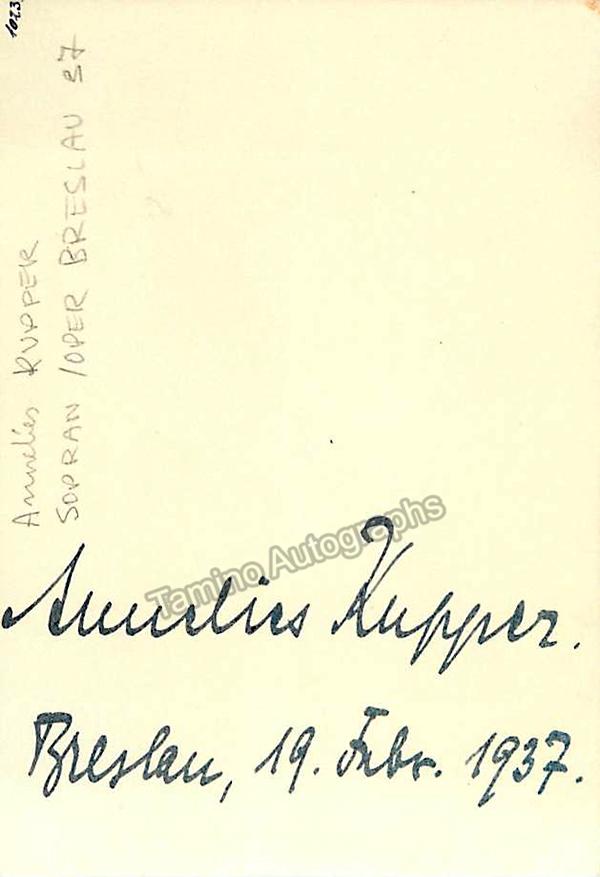 Signed photo postcard, shown as herself. Stamped on verso by photographer E. Hofer, Berlin. Size is 3.5 x 5.25 inches, in excellent condition.