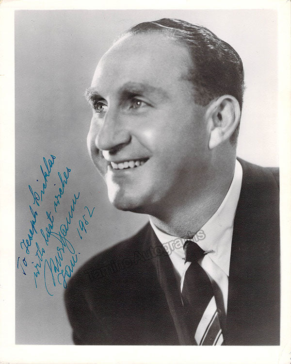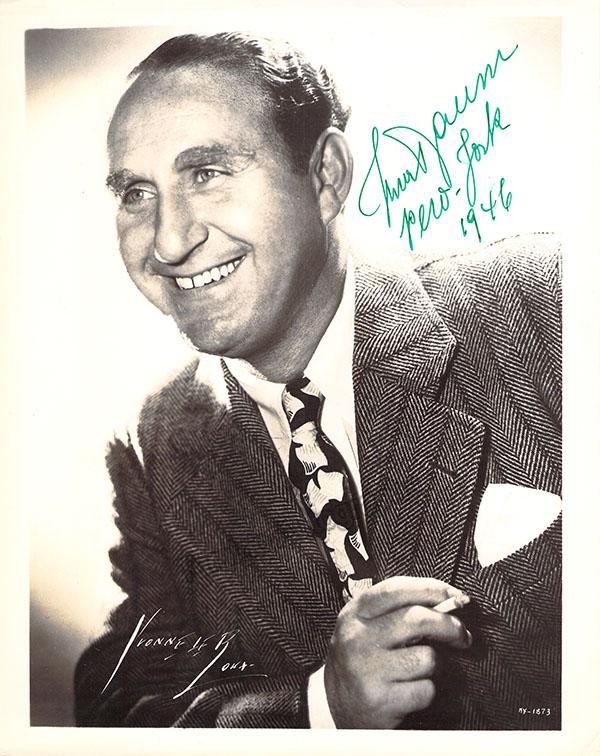 Signed photograph, shown as himself, dated in 1948. Signature of photographer Yvonne Le Roux, New York on front. Size is 8 x 10 inches, small creases on edges, otherwise in excellent condition.