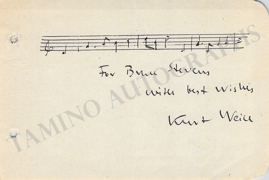 4-bar autograph music quote signed and inscribed by him with a short sentiment. Size is 5.75 x 3.8 inches, central fold, in excellent condition.