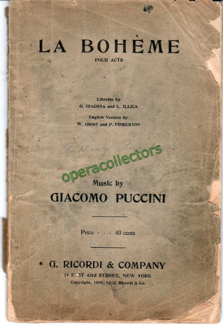 La Boheme - 1st American Edition Libretto 1898