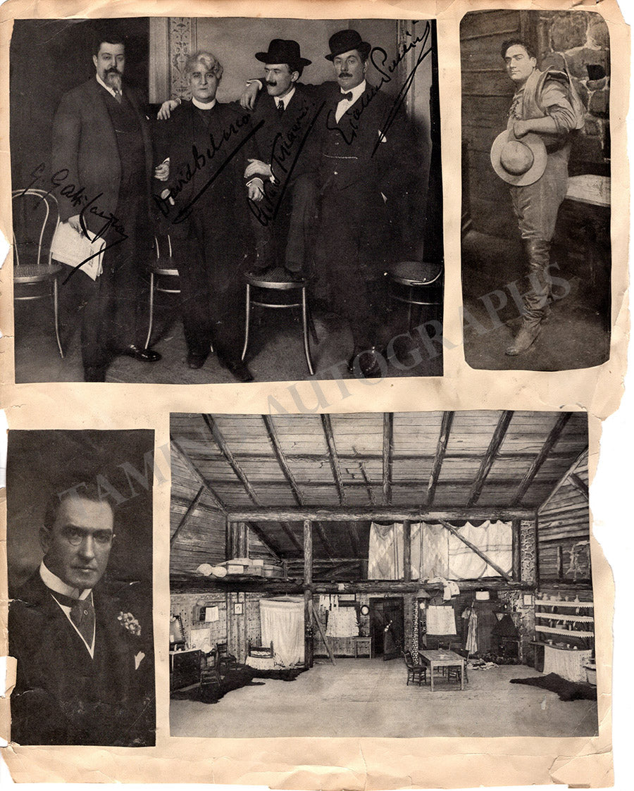 Both the program clip as the photo clips of the world premiere are attached (one of them with facsimile signatures corresponding to Giulio Gatti-Casazza, David Belasco, Giacomo Puccini, and Arturo Toscanini) in two separate sheets (4 pages total). Total size is 10.75 x 14. 2 inches, some cracks and loss of paper.