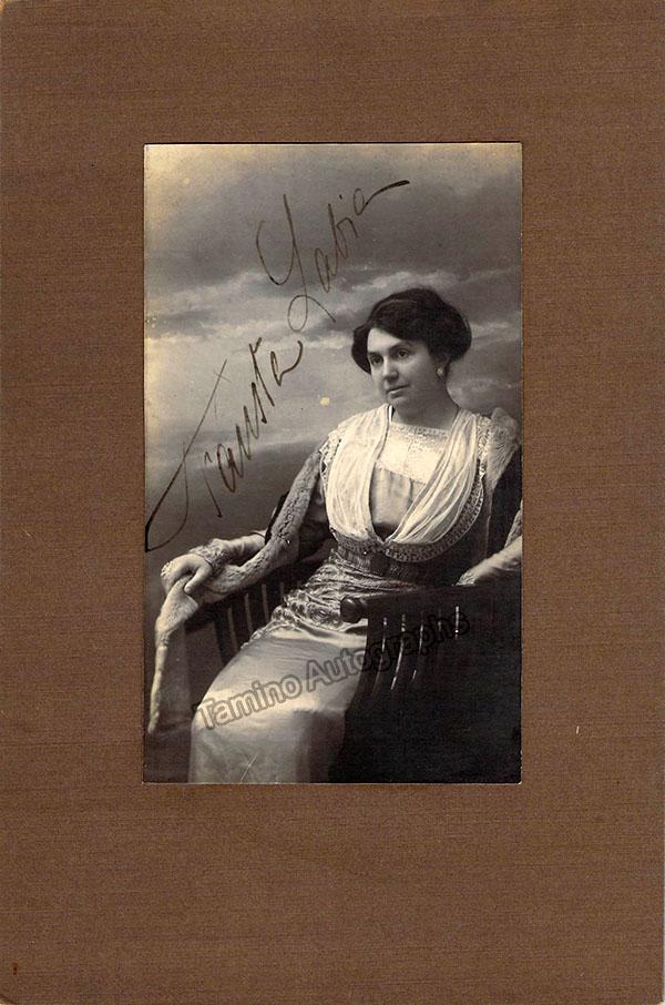 Italian soprano (1870-1935), signed photo, shown as herself. Photo size is 3 x 5 inches, mounted onto soft cardboard, total item is 5.25 x 7.75 inches, in excellent condition.
