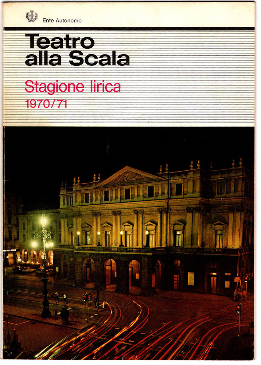 Program for a performance of Verdi's Il Trovatore at Teatro La Scala, Milan, on December 15th, 1970, signed by tenor Flaviano Labó, soprano Rita Orlandi-Malaspina, mezzo-soprano Fiorenza Cossotto, bass Ivo Vinco, and conductor Giuseppe Patané, plus one unidentified artist.