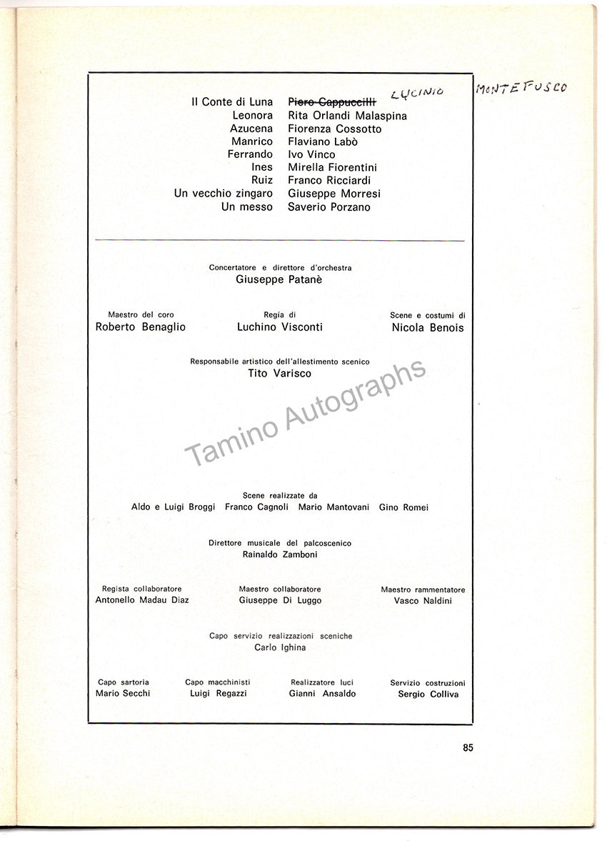 Labo, Flaviano - Cossotto, Fiorenza & Others - Signed Program Il Trovatore 1970 Labo, Flaviano - Cossotto, Fiorenza & Others - Signed Program Il Trovatore 1970 Labo, Flaviano - Cossotto, Fiorenza & Others - Signed Program Il Trovatore 1970