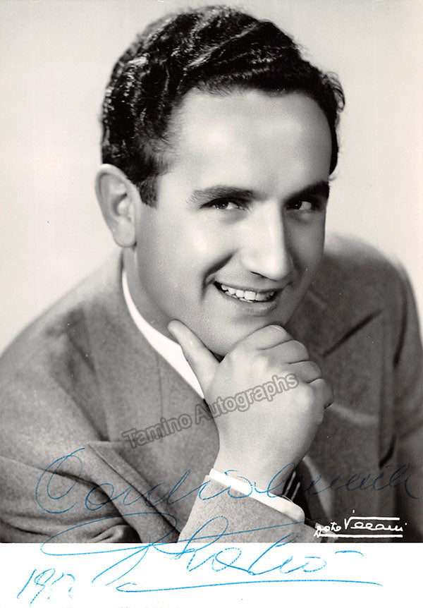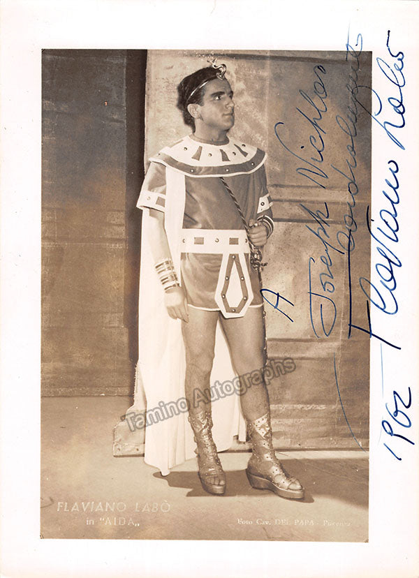 Signed photograph, shown as Radames in Verdi's Aida, inscribed and dated in 1962. Photo by Del Papa, Piacenza. Size is 5 x 7 inches, small creases and bends, otherwise in excellent condition.