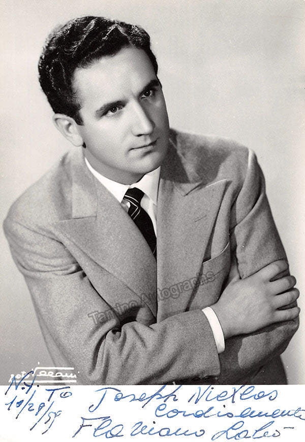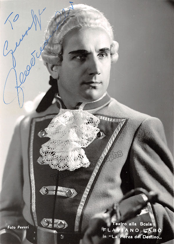 Signed photograph, shown as Don Alvaro in Verdi's La Forza del Destino. Inscribed. Photograph by Piccagliani, La Scala, Milan. Size is 4 x 5.75 inches, in excellent condition.