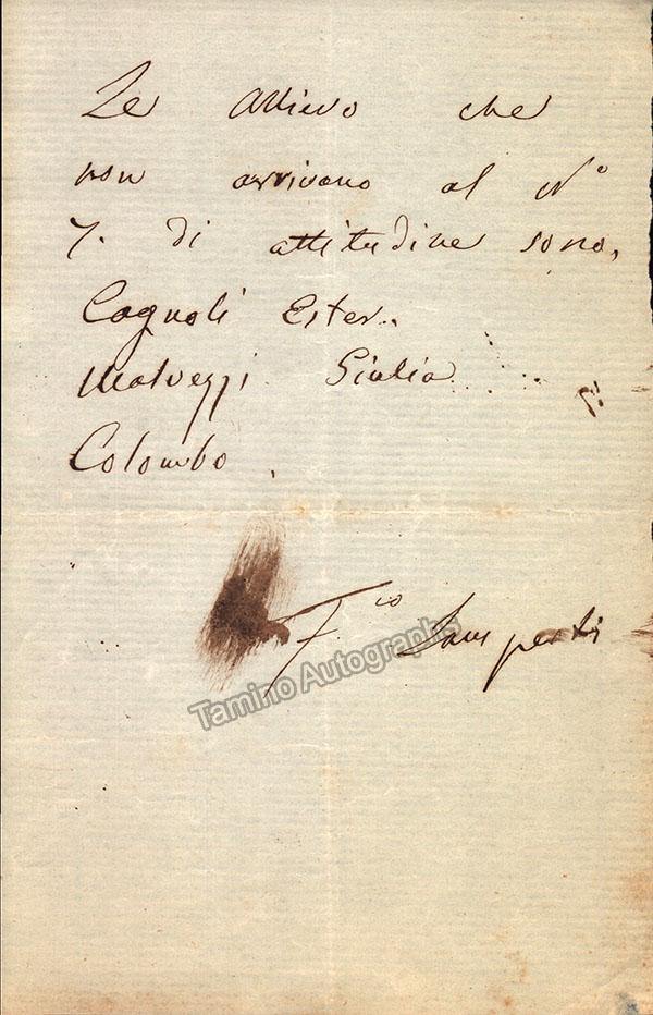 Lamperti, Francesco - Autograph Note Signed