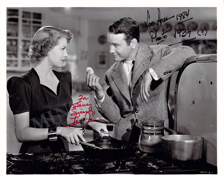 Beautiful black-and-white photograph signed by both artists, shown in the film "These Glamorous Girls" (1939). Size is 9.9 x 8 inches, in excellent condition.