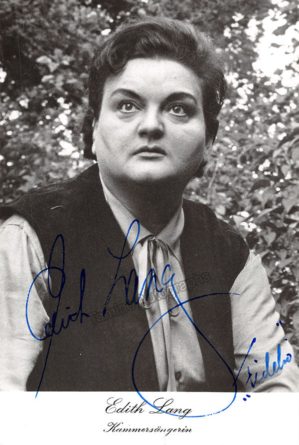 Signed photograph, shown as Mimi in Puccini's La Boheme. Stamped on verso by Conti-Press photo studio, Hamburg. Size is 3.25 x 5.25 inches, in excellent condition.