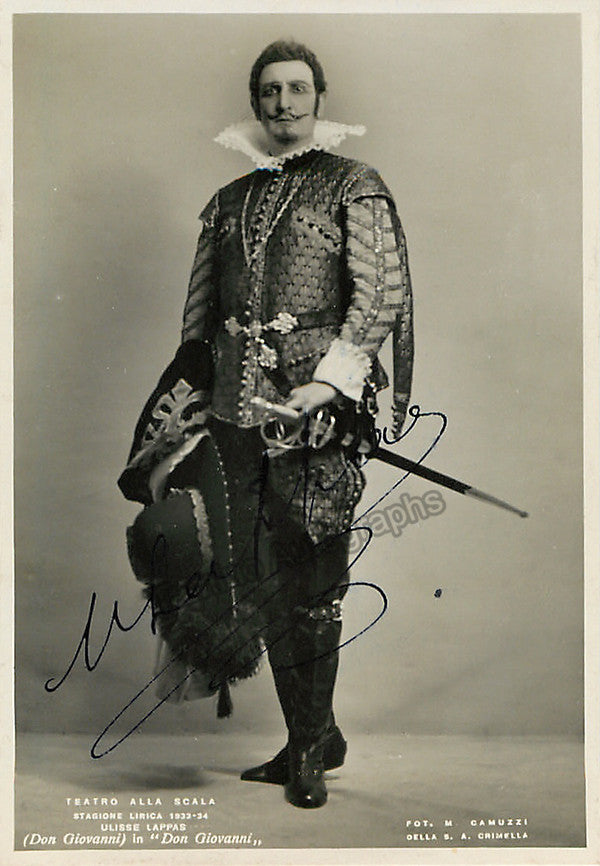 Italian tenor (1888-1971), signed photo postcard, shown in the title role in Don Giovanni. Size is 4 x 6 inches