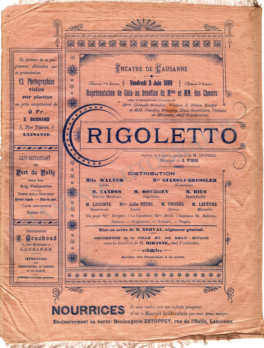 Lausanne Theatre Silk Program Rigoletto 1899