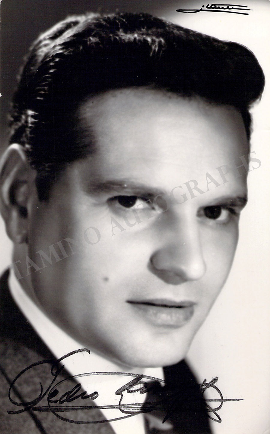 Signed photograph, shown as Don Jose in Bizet's Carmen, inscribed. Size is 3.5 x 4.75 inches, mounting traces on verso, otherwise in very good condition.