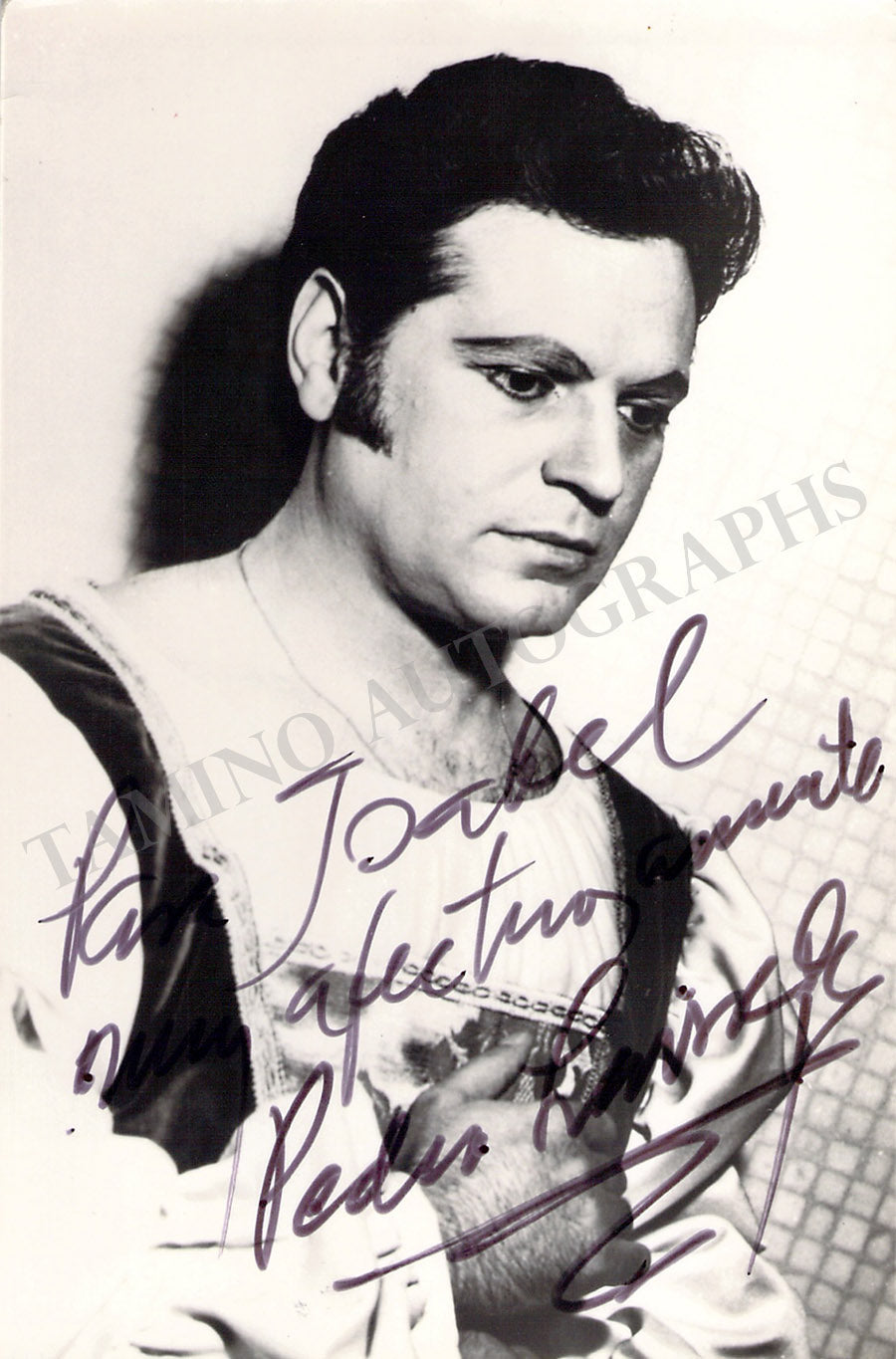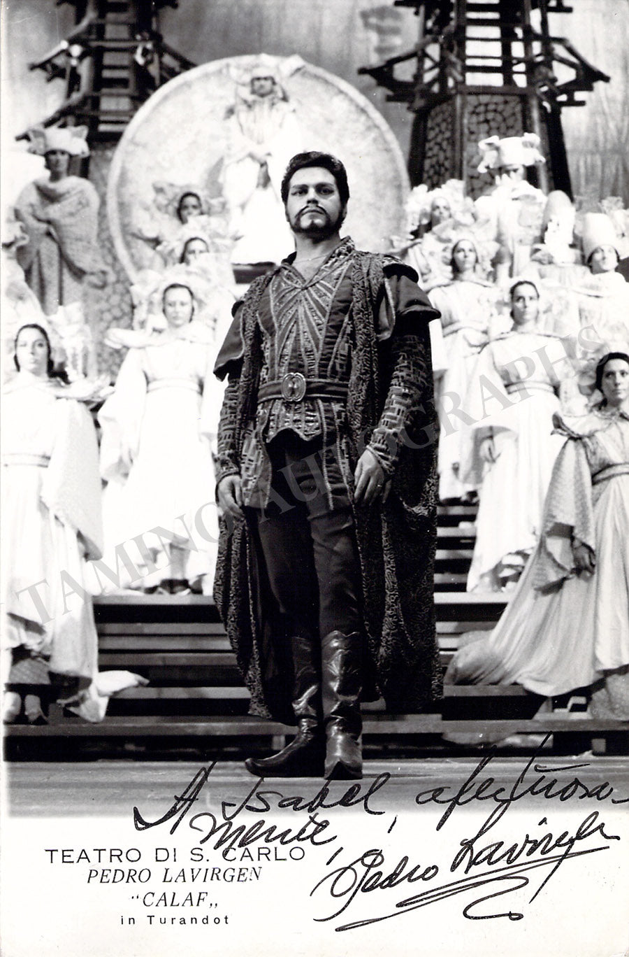 Signed photograph, shown as Calaf in Puccini's Turandot, inscribed. Stamped on verso by photographer Troncone, Naples. Size is 4.75 x 7.25 inches, small crease on bottom right, otherwise in very good condition.
