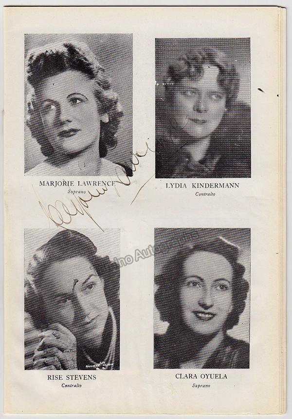 Program for a performance of Strauss' Daphne & Salome at Teatro Colón, Buenos Aires, Argentina, on September 12th, 1940, signed by the soprano on the photos page.  Size is 6.25 x 9 inches, minor rust stains, in very good condition.